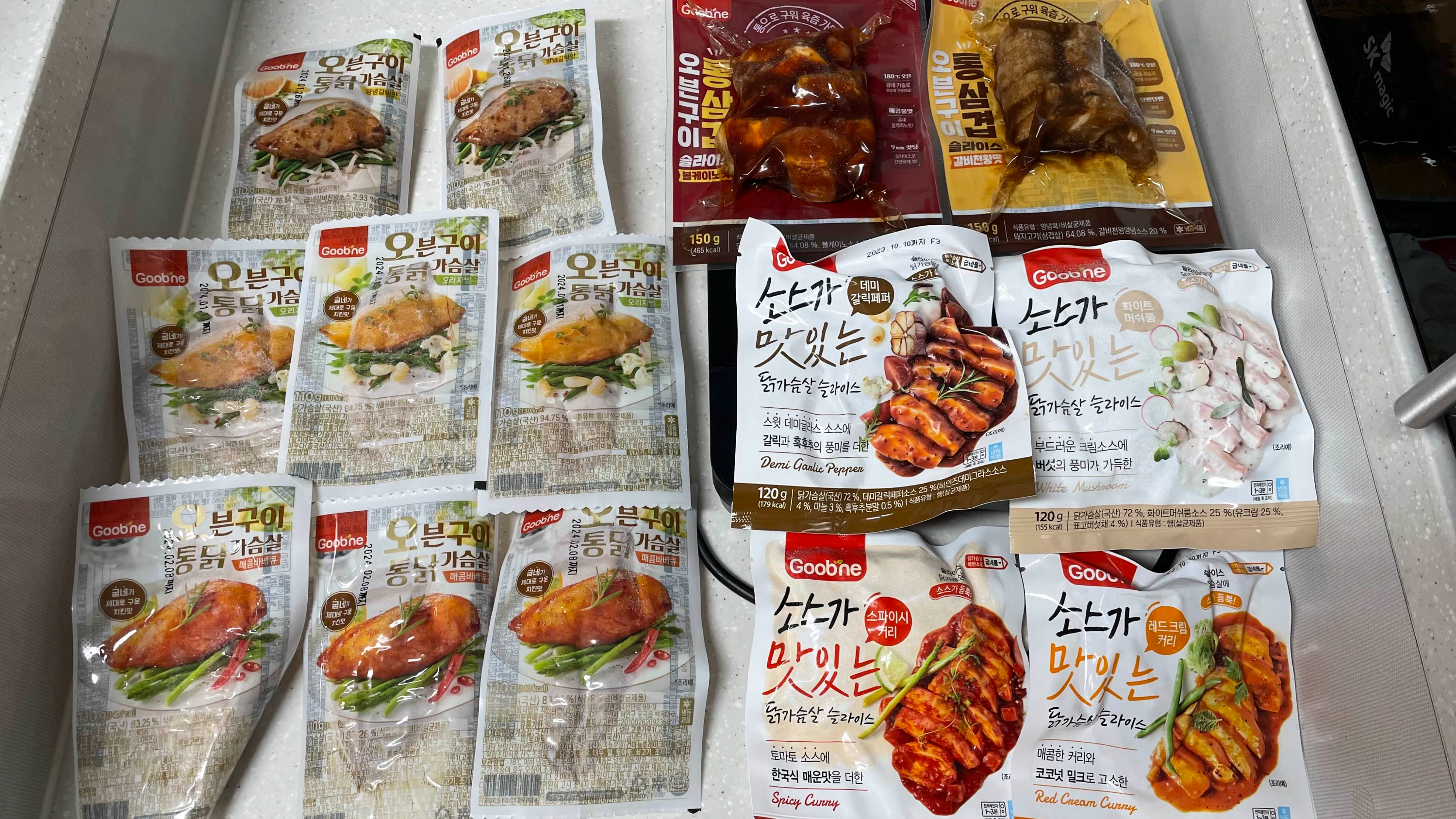 안녕하세요 여러분오랜만에 인사드립니다. 필자는 식습관 개선을 위하여 탄수화물은 줄이고 채소 및 단백질 섭취를 늘리기로 하여세상에서 가장 맛있을 것 같은 닭가슴살을 찾아봤답니다. ^^ 이름하야..굽네치킨 브랜드에서 만든 굽네몰 닭가슴살.. 과연 굽네치킨 맛과 비슷할까요?이 중에서 과연 먹을만한 닭가슴살은 무엇일까요? 필자가 구매한 종류는 아래와 같습니다.참고로 내돈내산입니다! 1. 오븐구이 통닭가슴살 1) 양념갈비맛 * 2 EA2) 오리지널 * 3 EA3 매콤바베큐 * 3 EA 1 EA : 3,800 원 2. 소스가 맛있는 닭가슴살 슬라이드 1) 데미 갈릭페퍼 2) 화이트 머쉬룸3) 스파이시 커리4) 레드크림 커리 각 1 EA : 4,400 원 3. 통삼겹 오븐구이1) 볼케이노맛2) 갈비천왕맛 ..